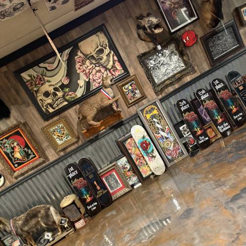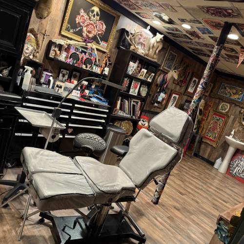 Take a quick look inside our tattoo studio. Our walls are lined with artwork from talented artists around the world, alongside our own original creations. In addition to custom pieces, we offer a wide selection of tattoo flash for you to browse — perfect for sparking ideas for your next tattoo.